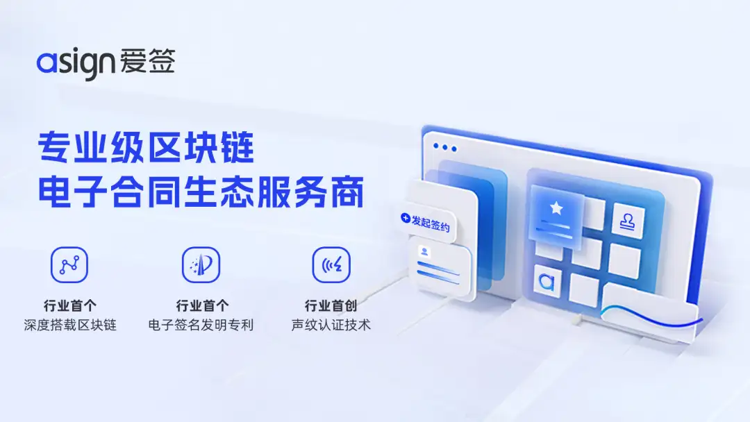 爱签作为 [ 专业级区块链电子合同生态服务商 ],早在2019年成功打造行业首个区块链电子签约平台,采用区块链技术以可靠的电子合同替代了传统纸质合同,以可靠的电子签名替代了传统手写签章,为各大公司提供一整套成熟、专业的电子签章服务。