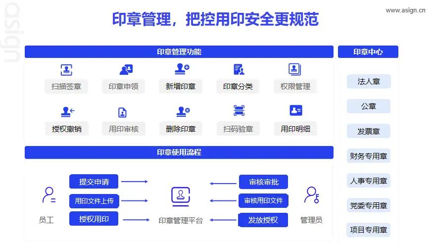 爱签作为 [ 专业级区块链电子合同生态服务商 ],成功打造行业首个区块链电子签约平台,采用区块链技术以可靠的电子合同替代了传统纸质合同,以可靠的电子签名替代了传统手写签章,能够实现企业印章的数智化管理,用印过程“全程监控、授权用印”,用印结果”留痕留底、可追溯“。