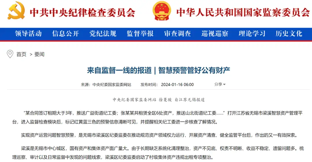 近日,中纪委官网发表《来自监督一线的报道 | 智慧预警管好公有财产》一文,报道中对电子印章在实现资产运营问题智慧预警中的出色表现给予了肯定。