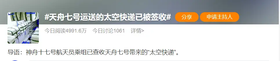 同时,全球物流大通道也正在加速延伸,连地球都无法束缚,甚至还直接冲出大气层,“天舟七号运送的太空快递已被签收”直接上了热搜。