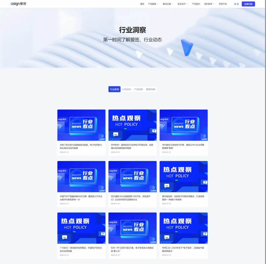- 上线行业洞察,随时了解近期行业和爱签最新动态