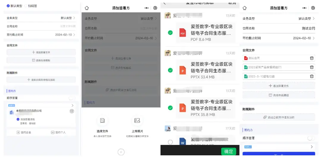 爱签将本地合同上传从单文件选择方式调整至多文件选择,无论是PC端还是H5、小程序都能方便操作,满足有多文件发起需求的企业需求。