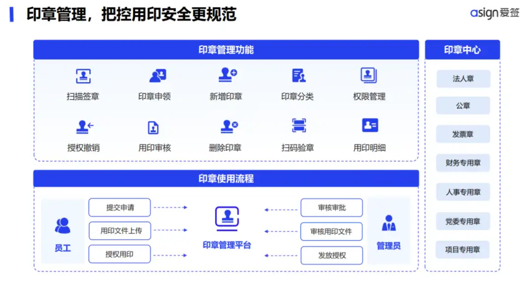 爱签提供安心的电子签章服务,基于真实可靠的数字身份,让每个电子印章都能与企业的真实身份绑定,有效杜绝公章私刻的隐患,具备法律效力且无法伪造;