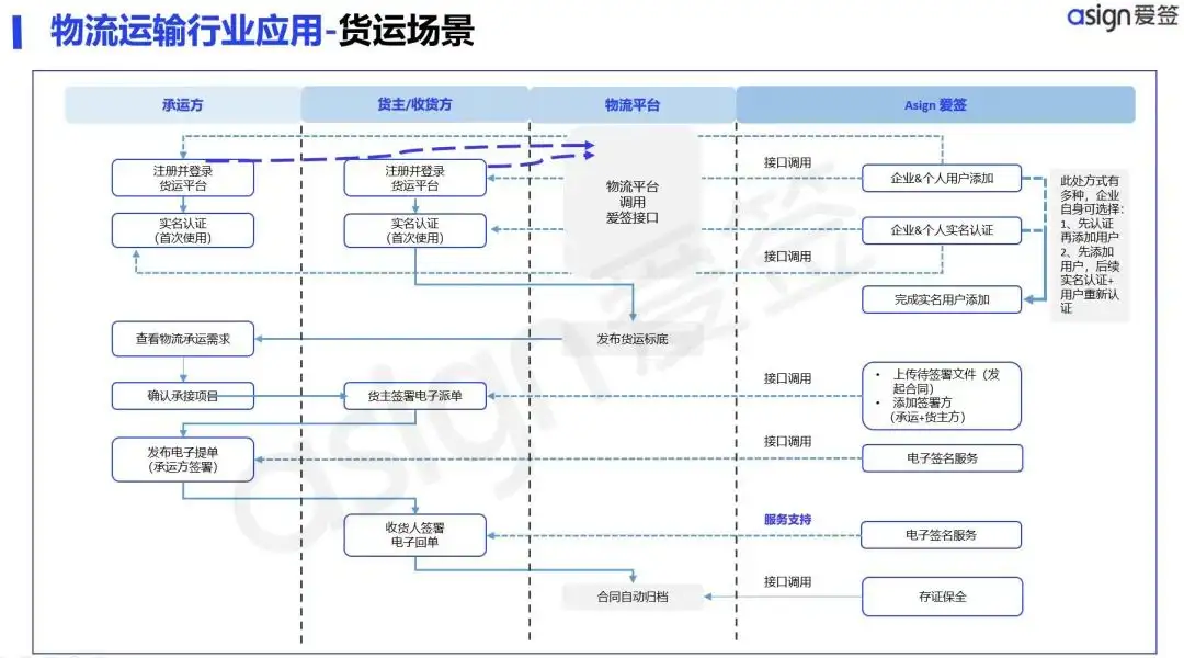 该方案可提供从平台发单、承运商接单到运输、交货、回单签署、管理等各个关键节点合同文件的电子签署服务,实现货运单据编制、审批、签章、归档及管理全程数字化。