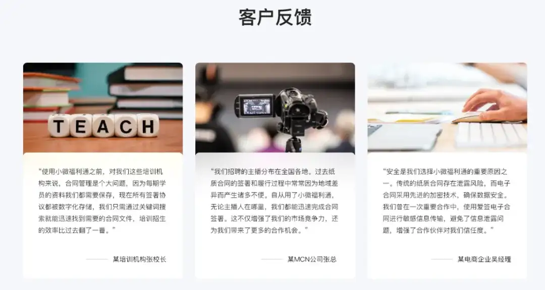 小微福利通套餐已经在部分中小企业中率先运用。如某培训机构,过去大量纸质培训协议存储查找费时费力,通过使用爱签电子合同服务,所有签署协议都被数字化存储,只需通过关键词搜索就能迅速找到需要的合同文件,培训招生的效率比过去翻了一番。