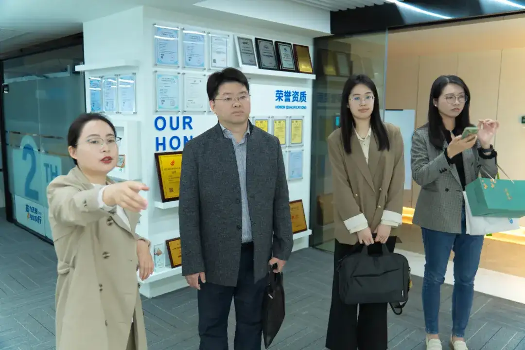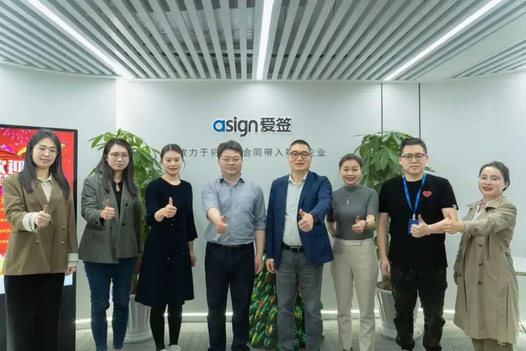 徐局长一行参观了爱签数字办公区、并详细了解爱签发展历程、创新应用及企业文化,大家对于爱签近年的快速发展与业务成果表示赞许和祝贺。