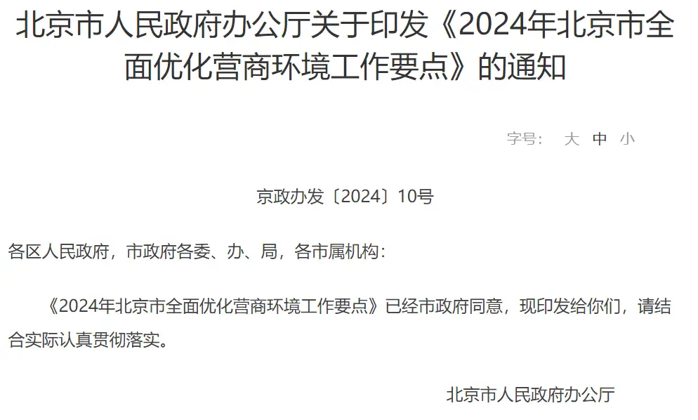 近日,北京市发布《2024年北京市全面优化营商环境工作要点》(以下简称《要点》),明确了北京优化营商环境方面的全年重点任务,计划年底前全部完成。