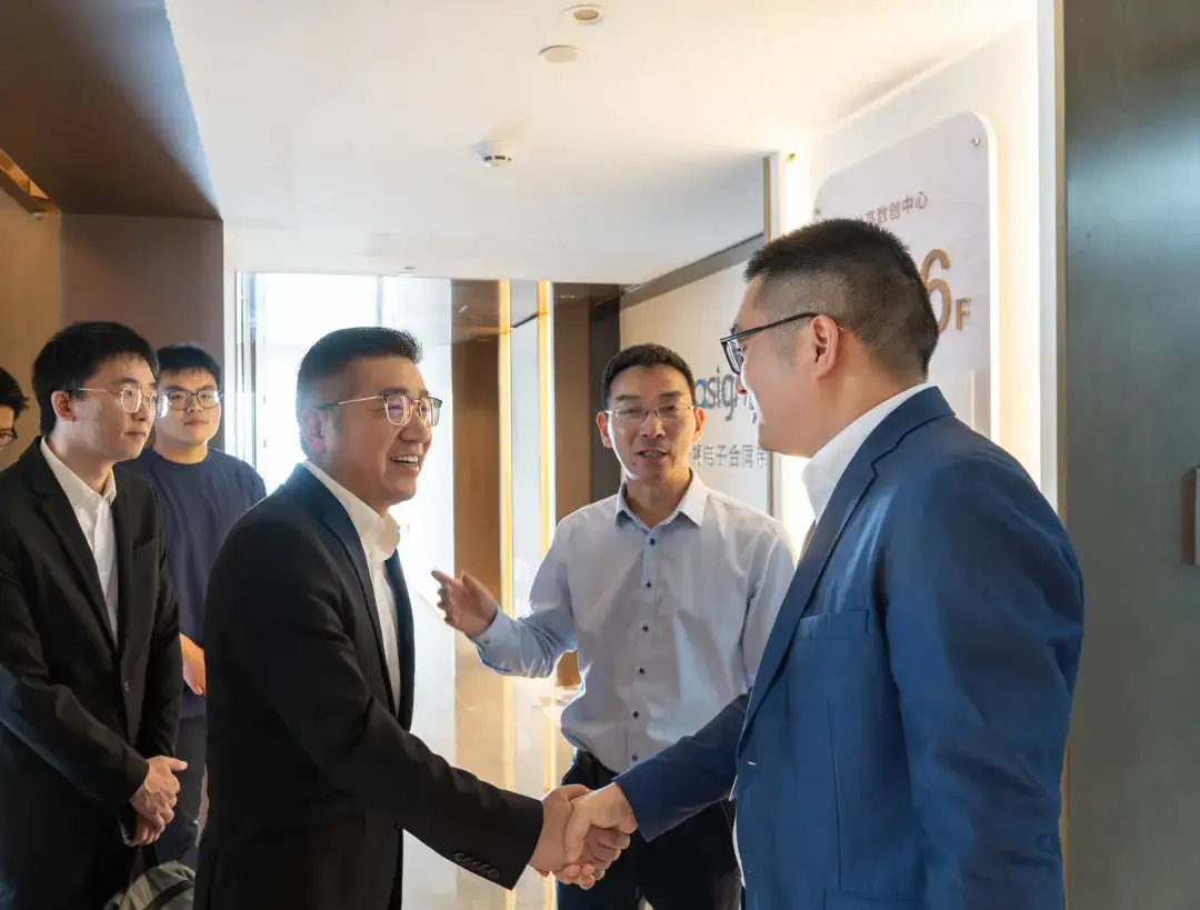 座谈会前,缪曜昌副主任和张华培总经理在无疆的陪同下,参观了爱签数字办公区、并详细了解爱签发展历程、创新应用及企业文化,大家对于爱签近年的快速发展与业务成果表示赞许和祝贺。