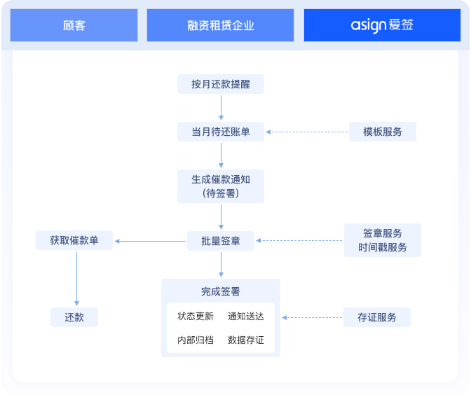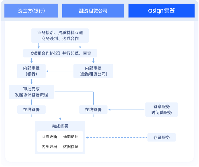 租赁期间通过爱签平台完成各类资产管理文件的电子化签署,包括租金支付确认、资产巡检记录等,实现租赁资产全生命周期管理。
